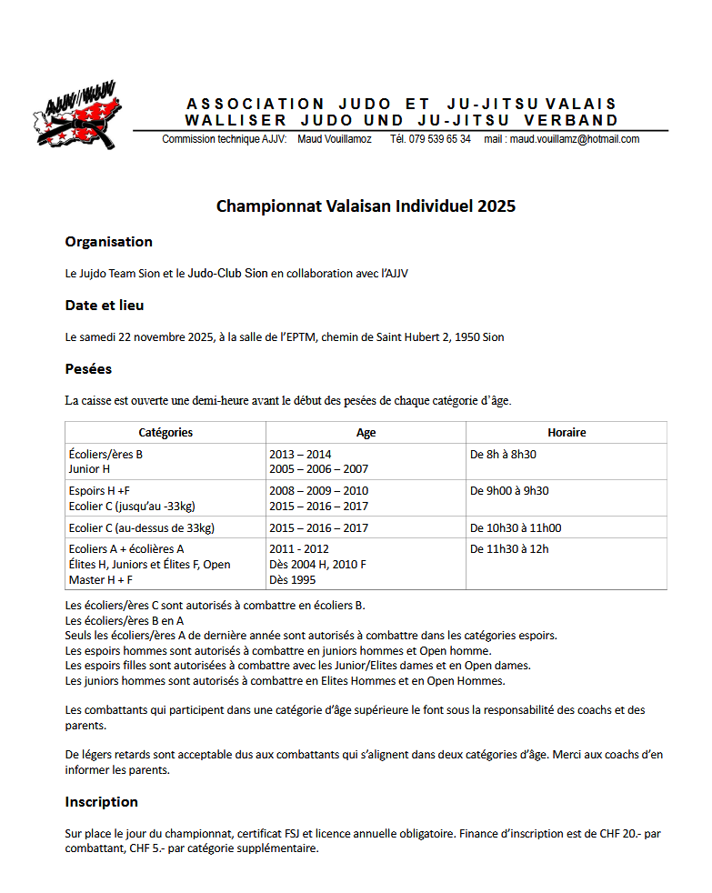 Ils sont organisés conjointement par le Judo Team Sion et le Judo Club Sion.